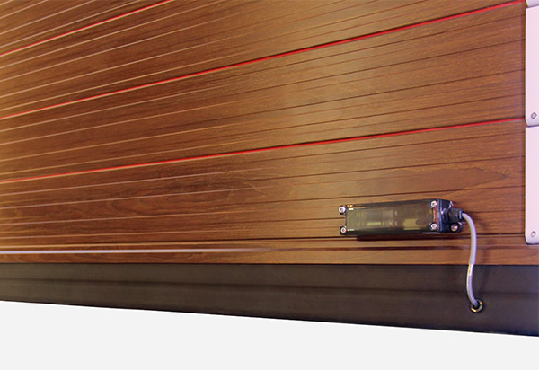 門體兩側(cè)裝有LED倒車感應(yīng)示寬燈,即使在下雨、下霧的天氣或者晚上視線不好的情況下,也能安心的將車倒進(jìn)車庫內(nèi)。